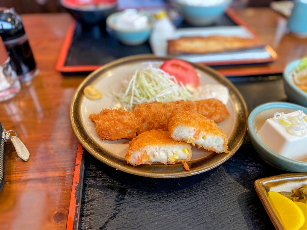 メンチカツのはずだが、ひき肉ではなくジャガイモ。つまりほぼコロッケのような味わいだった。