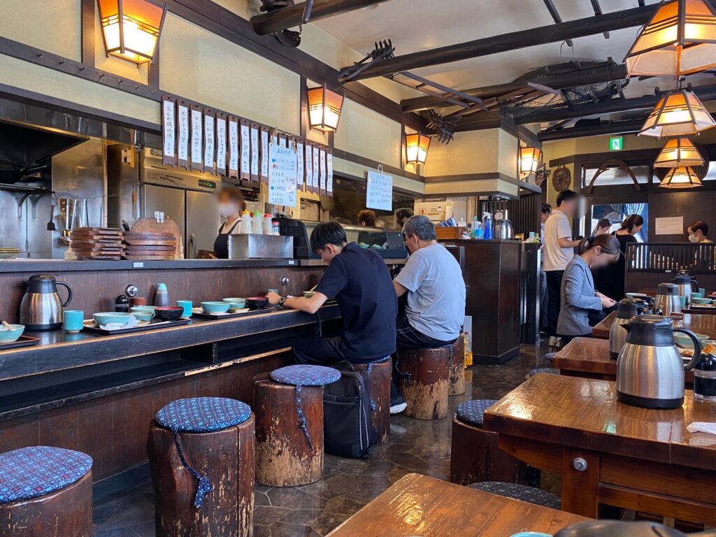 店内はこんな感じ。いわしを囲炉裏で焼いてそうな店内。必ずしも外装の古さとは連動せず中はリフォームできれいにされているような気もした。