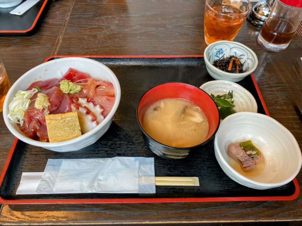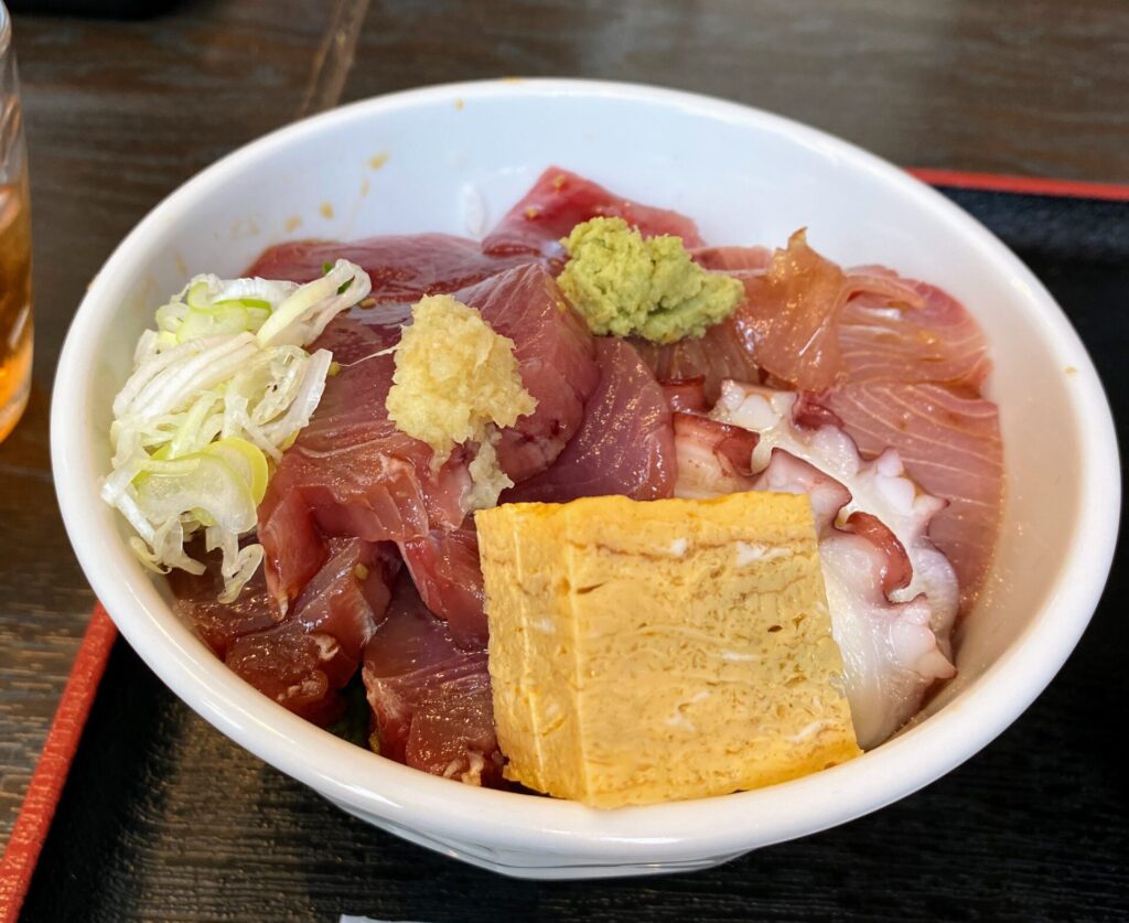 ほどなくして丼(まぐろ、たこ、ぶり、かつお)ごはん普通盛り2,400円が到着。