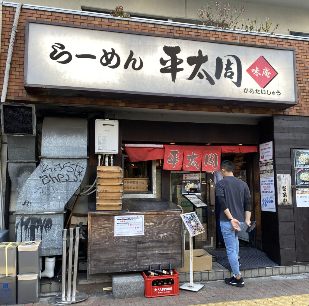 大崎駅から徒歩7分。ほぼ五反田に入る手前にらーめん平太周 五反田本店が出迎える。