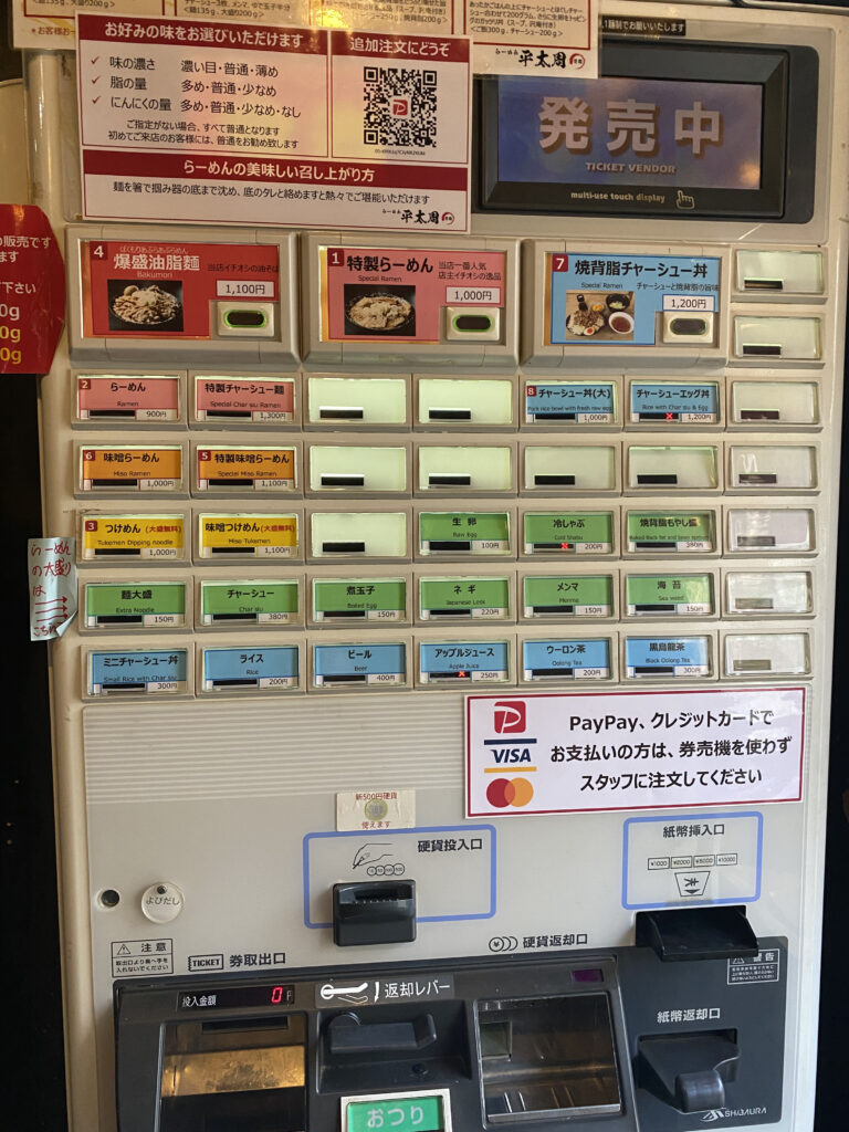 券売機ゆえに、現金しか使えないらーめん屋も多い中でスタッフを通せばキャッシュレス決済に対応しているのもポイントが高い。