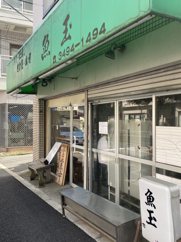 やはり年季が入りすぎている。個人的には看板周辺の黒いにじみと、看板に電話番号が入っている感じこの二つが魚玉を鮮魚卸売店だけ営業していると勘違いしてしまうポイントかと考察している。