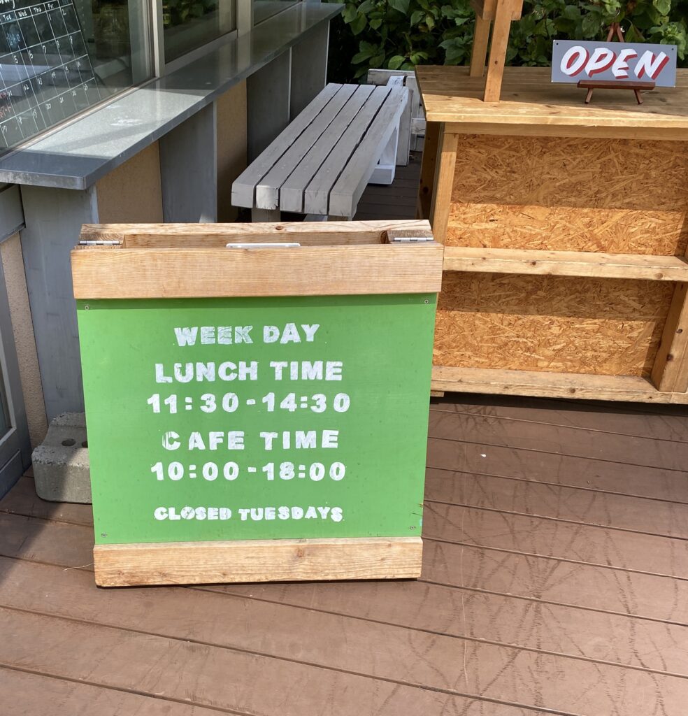 入り口には営業を知らせる看板と、営業時間の看板。基本的には昼営業のみのようだ。
