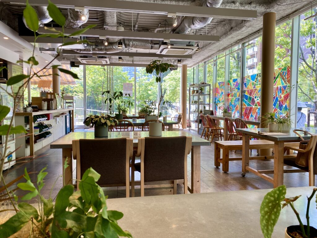 洗練された高層ビルとタワーマンションに囲まれた一角に全面ガラス張りのカフェが現れる。