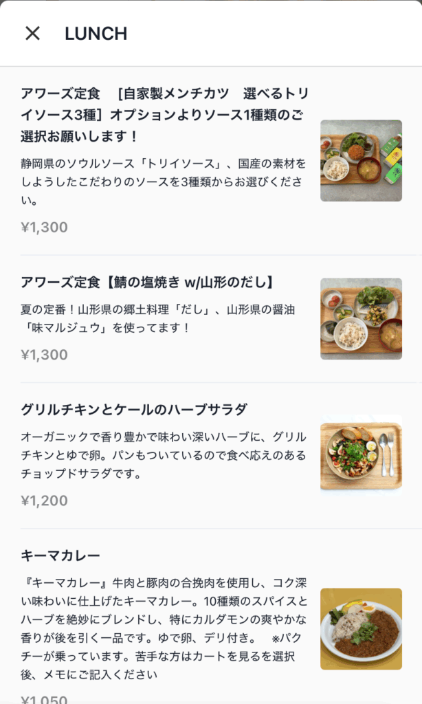 モバイルオーダーでは写真が付いているのでより商品イメージがわきやすい。
