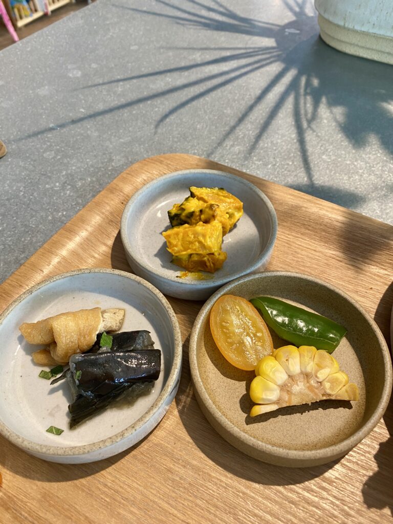 あまりにもハバネロソースが辛すぎたためか、小鉢の優しい味付けが身に染みる。
