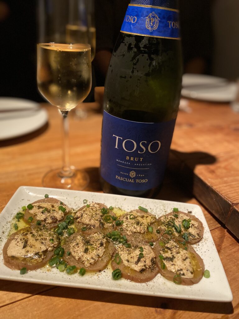 週の終わりにふさわしい乾杯に選ばれたのは、アルゼンチンからのスパークリングワインToso Brut(4,900円)だ