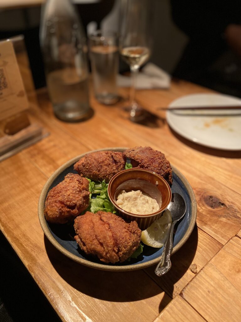 こちらは同僚が頼んだ若鳥のから揚げ(800円)、タルタルソースを添えて。