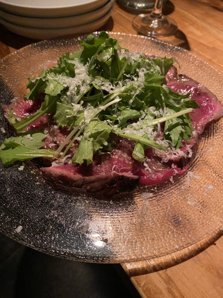 一口で食べるには惜しい肉の刺身は、ソースによって広がる味わいをチーズの香りでそっと閉じ込めてくれる。